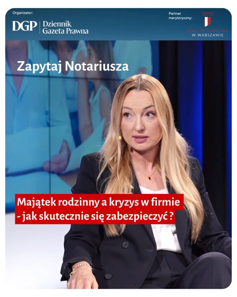 Ukazał się kolejny odcinek videocastu „Zapytaj Notariusza”, realizowanego we współpracy z Dziennikiem Gazetą Prawną. Tym razem rozmowa dotyczy rozdzielności majątkowej małżeńskiej, potocznie nazywanej intercyzą, oraz tego, kiedy może ona realnie chronić majątek rodziny, a kiedy jej zawarcie może okazać się spóźnione.