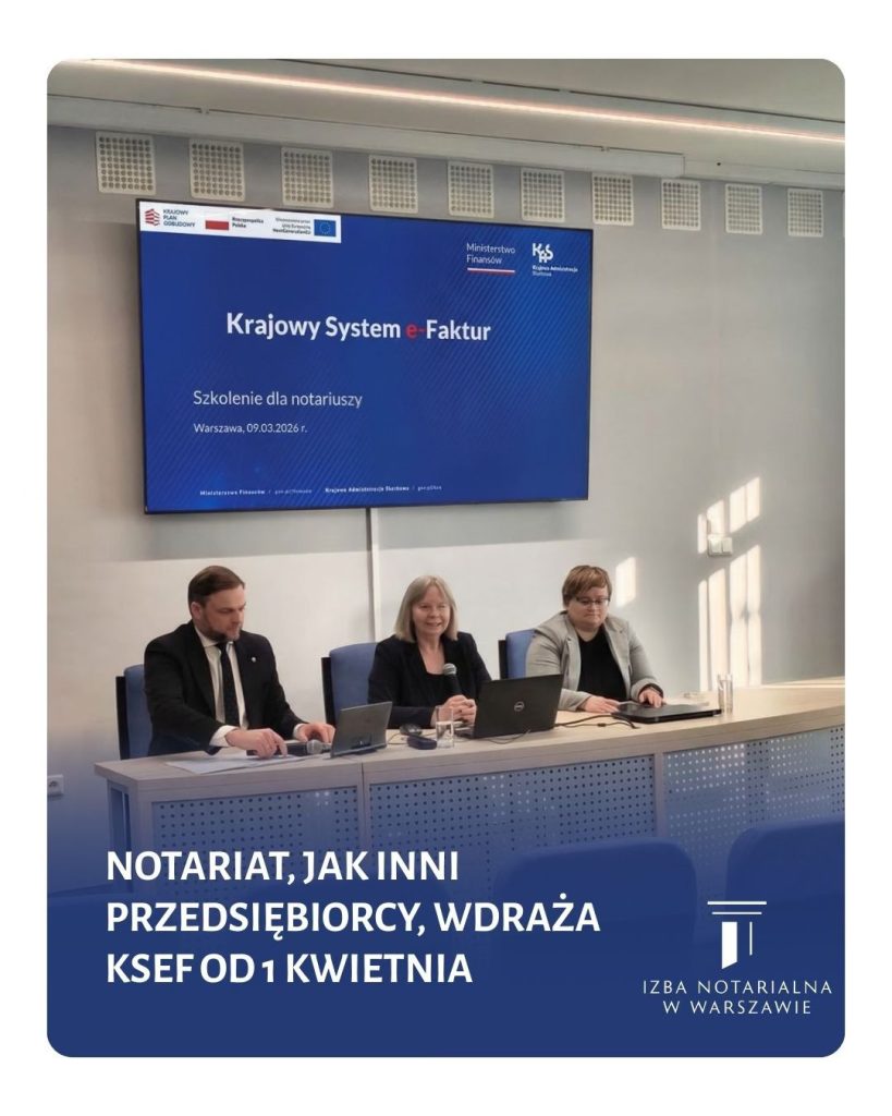 9 marca w Warszawie odbyło się szkolenie poświęcone funkcjonowaniu Krajowego Systemu e-Faktur (KSeF), zorganizowane wspólnie przez Izbę Notarialną w Warszawie oraz Izbę Administracji Skarbowej w Warszawie.