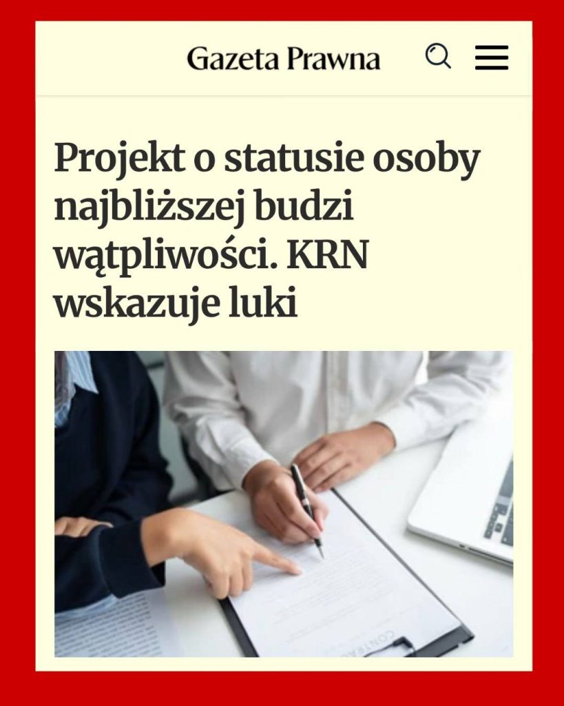 Na łamach „Dziennika Gazety Prawnej” przedstawiono stanowisko Krajowej Rady Notarialnej dotyczące rządowego projektu ustawy o statusie osoby najbliższej i umowie o wspólnym pożyciu.